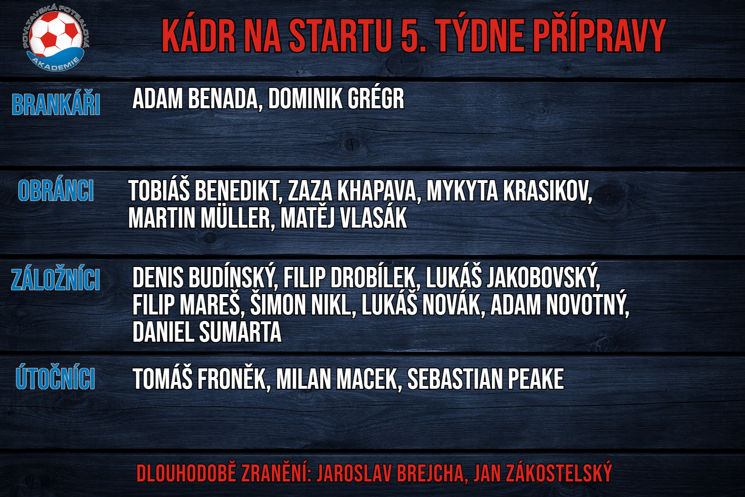 Kádr prozatím neprochází velkou revolucí. Oproti podzimnímu v kádru již nejsou Jon s Valínem, místo nich přišli Budínský s Mackem. Téměř jisté je jarní působení brankáře Benady v našem dresu a klub nadále vyhlíží možnost posílení aktuálně užšího kádru do bojů o první místu tabulky. Aktuálně se s áčkem nepřipravují hráči kmenově z béčka (Fridrich, Klymskyj).