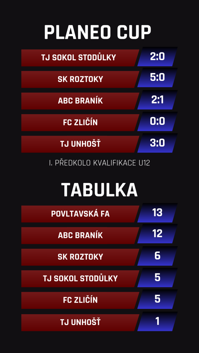 Ve středu čekalo I. předkolo kvalifikace Planeo Cupu tým U12. O tři postupová místa do další fáze hrálo šest týmů. Turnajem tým prošel bez výraznějších komplikací, ztratil body pouze při jedné remíze a bez problémů postoupil z prvního místa. Během pěti zápasů, hraných systémem 7+1 na 20 minut, navíc inkasoval jediný gól.